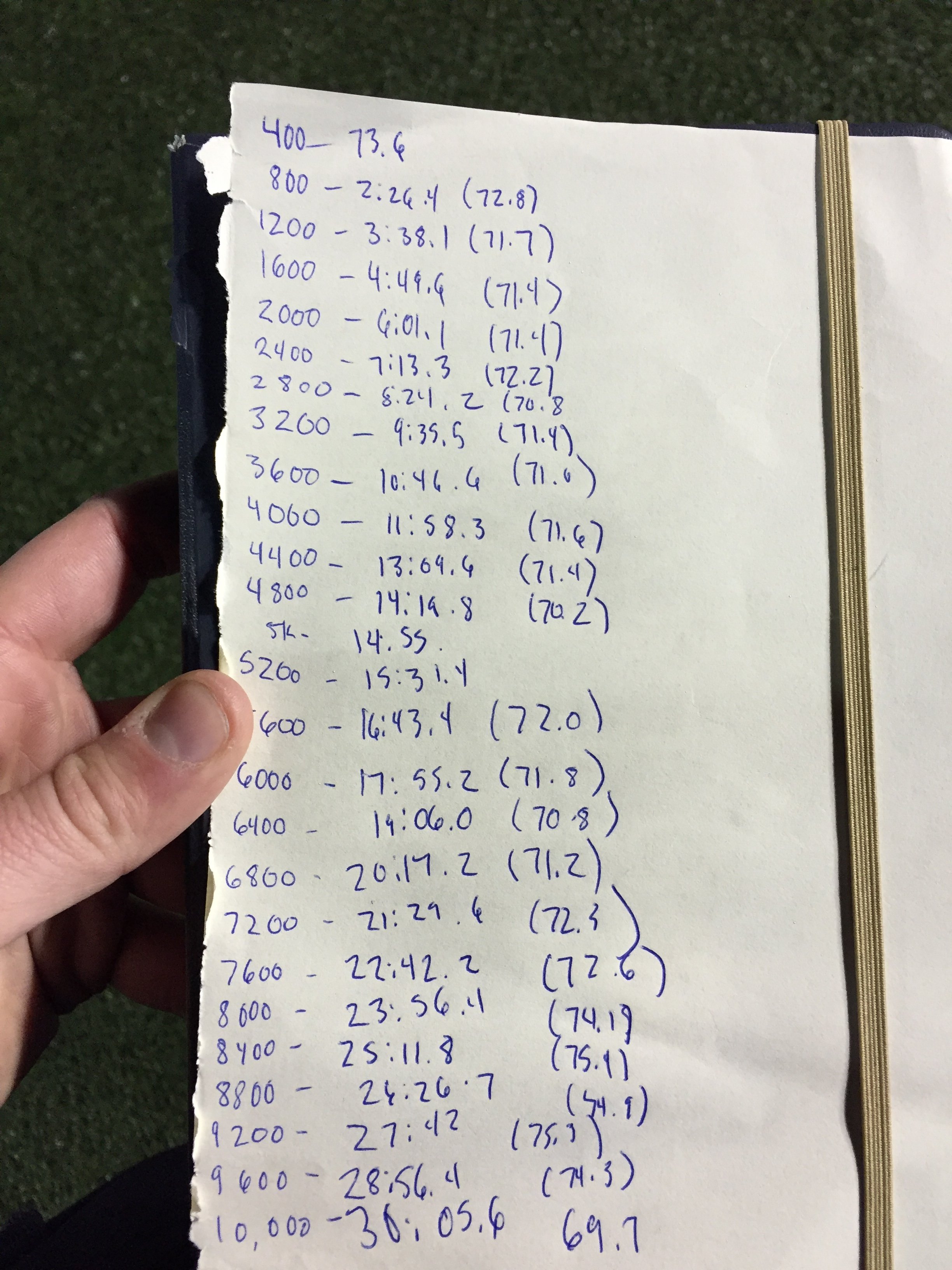 Splits for Mo’s 30:05.88 10K
